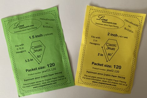 This means: 2 inch Jewels will fit 2 inch 60˚ Diamonds on the long sides and 1 inch Hexagons at the short sides.