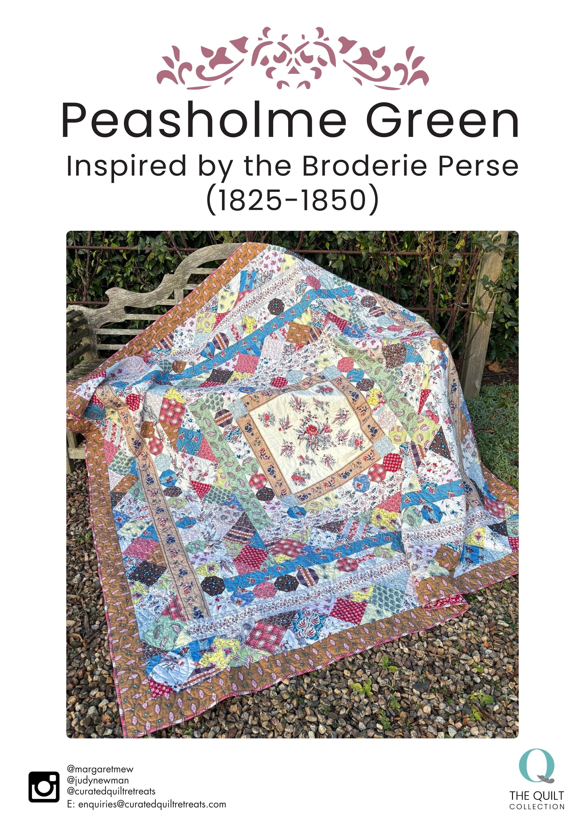 Inspired by the Broderie Perse panel coverlet (1825-1850) as Quilt Collection museum piece, the Peasholme Green pattern has been made by Judy Newman and Margaret Mew as part of their reimagining of the coverlet through their fabric line.