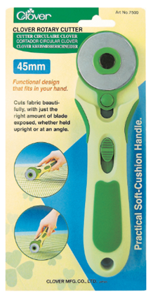 Clover's Soft Touch Cushion Handle rotary cutter cuts fabric beautifully with just the right amount of blade exposed, whether held upright or at an angle. Can be used by both left and right handed people.