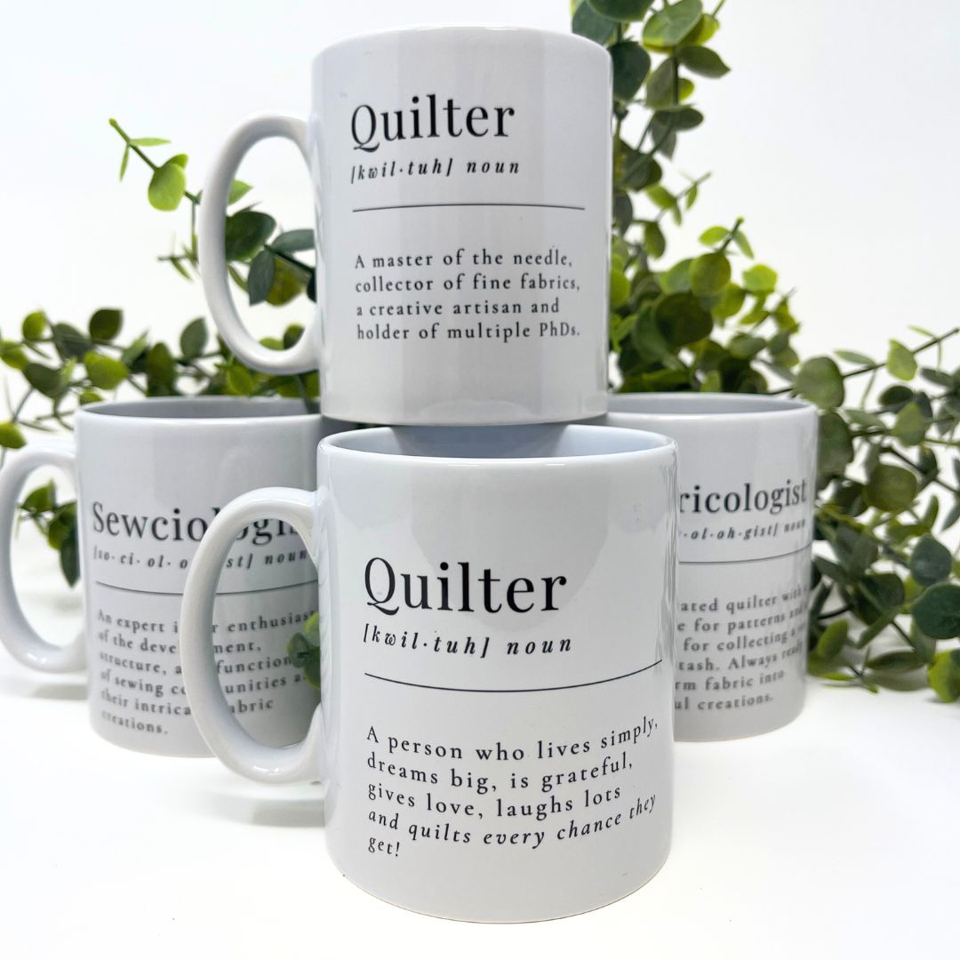 Embrace the joy of quilting with our charming definition mugs. Each white mug beautifully captures the essence of being a quilter. Featuring one of four heartfelt definitions available in our store, each design is crafted to embrace the joy, talent and love of quilting.