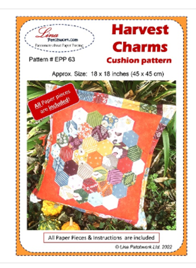 ‘Harvest Charms’ cushion pattern is designed with the use of 2.5″ fabric Mini Charms in mind